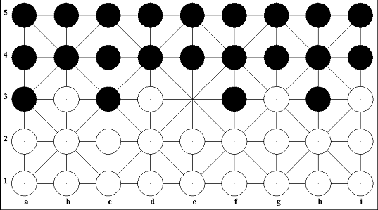 Figure 2.1: The start position of a Fanorona game.
